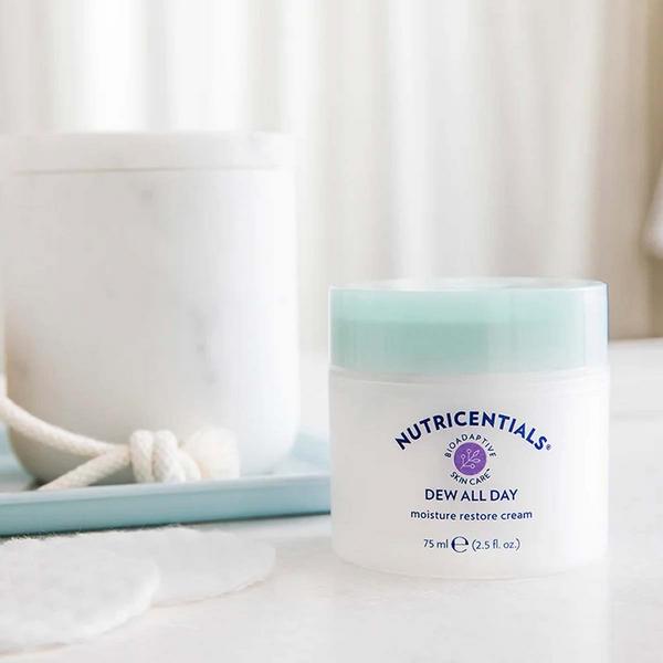 - Nutricentials Dew All Day zklidňuje, zjemňuje a vyhlazuje pleť a zajišťuje její celodenní hydrataci, abyste vypadali co nejlépe bez ohledu na to, jaké stresové faktory vám přijdou do cesty.